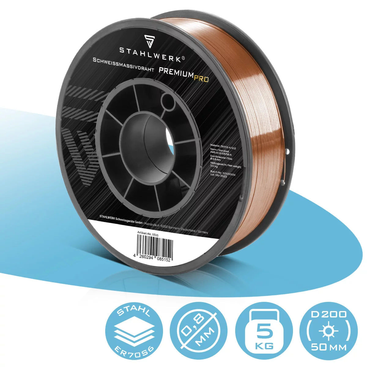 Stahlwerk mig Mag welding wire ER70S-6 SG2 Ø 0.8 mm S200/D200 wire roll 5 kg