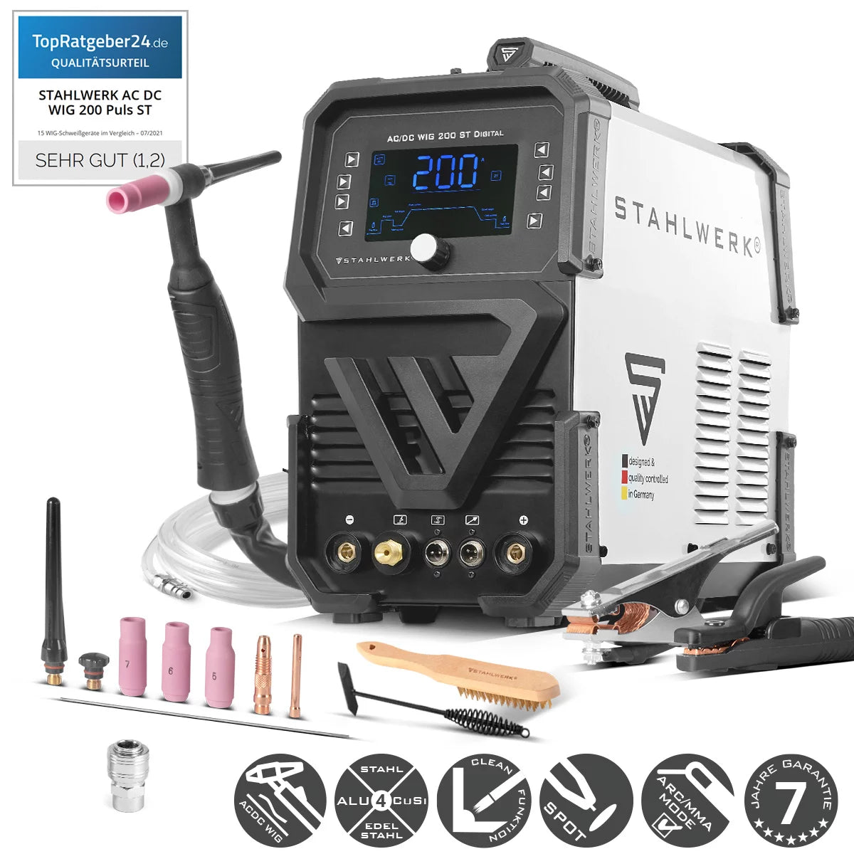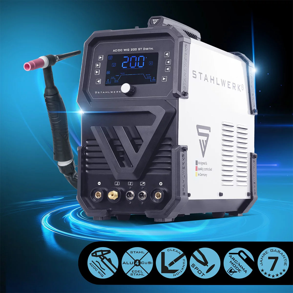STAHLWERK welding machine AC/DC TIG 200 ST Digital 2026 | 3-in-1 combination welding machine | Spot function | Integrated clean function | Aluminum-suitable TIG/MMA inverter with 200 A | Remotely controllable | Digital control panel
