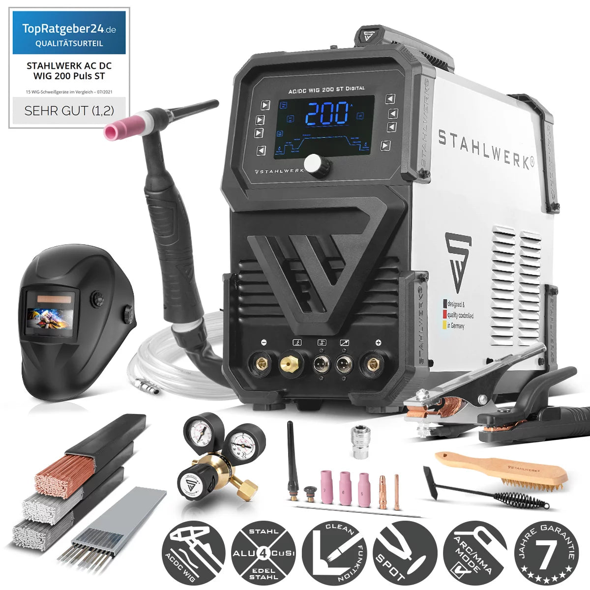 STAHLWERK welding machine AC/DC TIG 200 ST Digital 2026 fully equipped | Combination welding machine | Combination welding system | Aluminum-suitable TIG MMA inverter with 200 A and integrated clean function