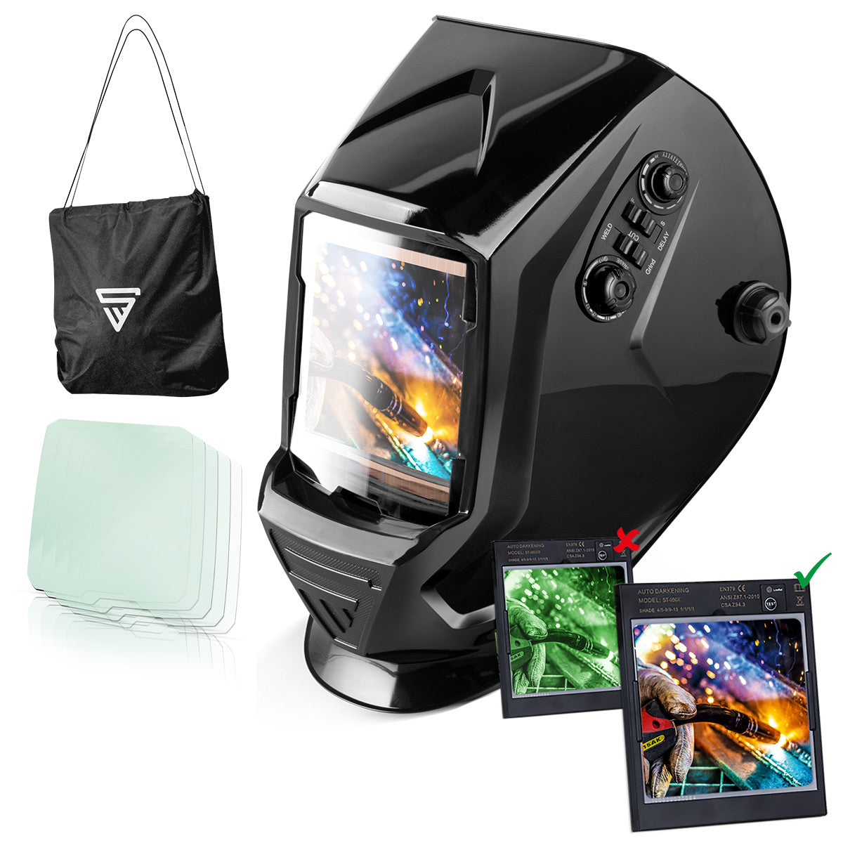 Steelworks full automatic real color welding helmet with 3-in-1 function ST-990 XB, black glossy