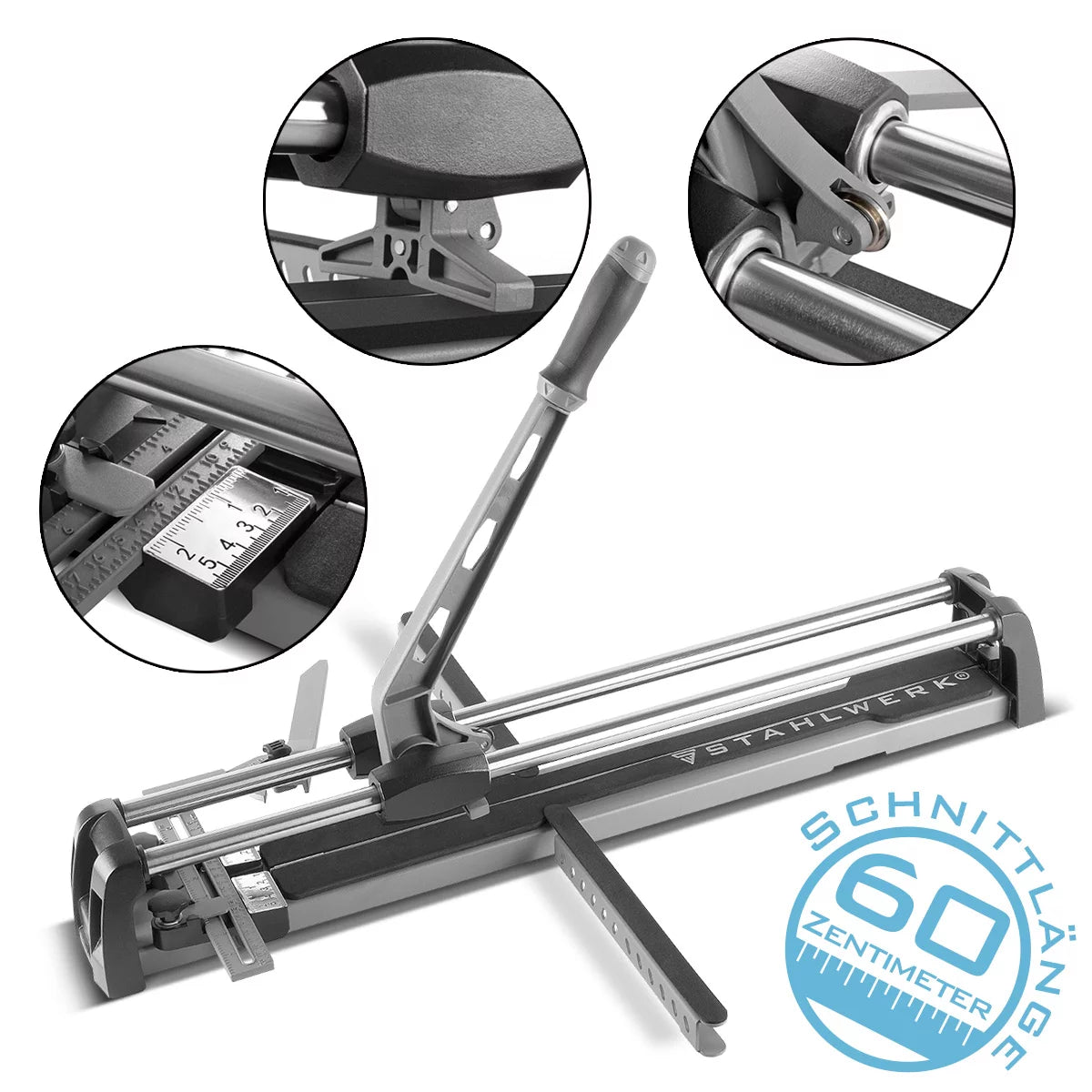 STAHLWERK Profi Fliesenschneider PFS-600 ST mit 600 mm Schnittlänge, 425 mm Diagonal-Schnittlänge und 14 mm Schneidstärke, Handfliesenschneider / Fliesenschneidemaschine mit Hochleistungs-Schneidrad zum Trennen von Keramikfliesen