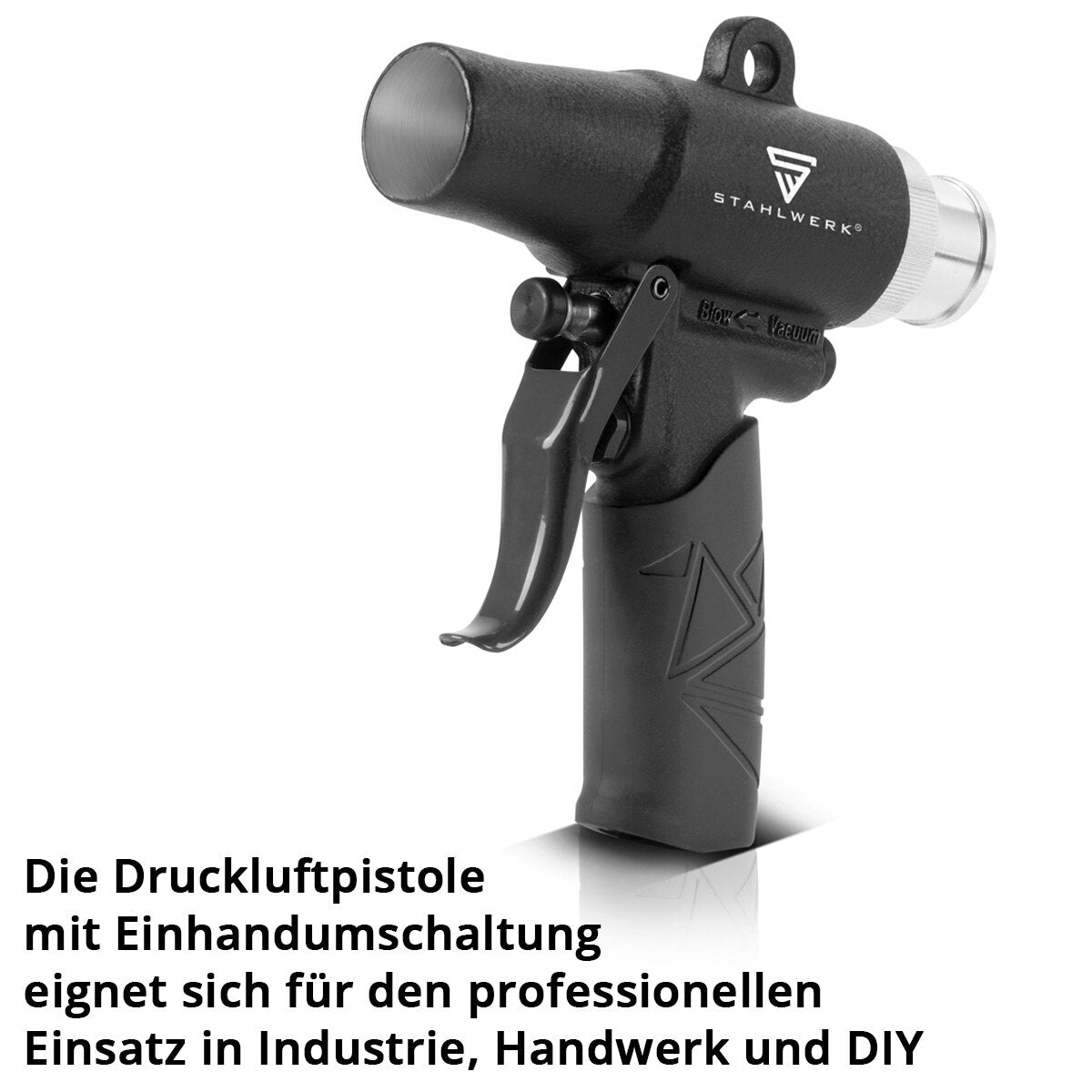 Pistola de limpieza SWIT de stwit con acero en acero con succión con la función de succión y viento | Pistola de succión | Pistola Blas | Pistola de altura de aire de aire comprimido | Aspiradora de aire comprimido con bolsa de polvo