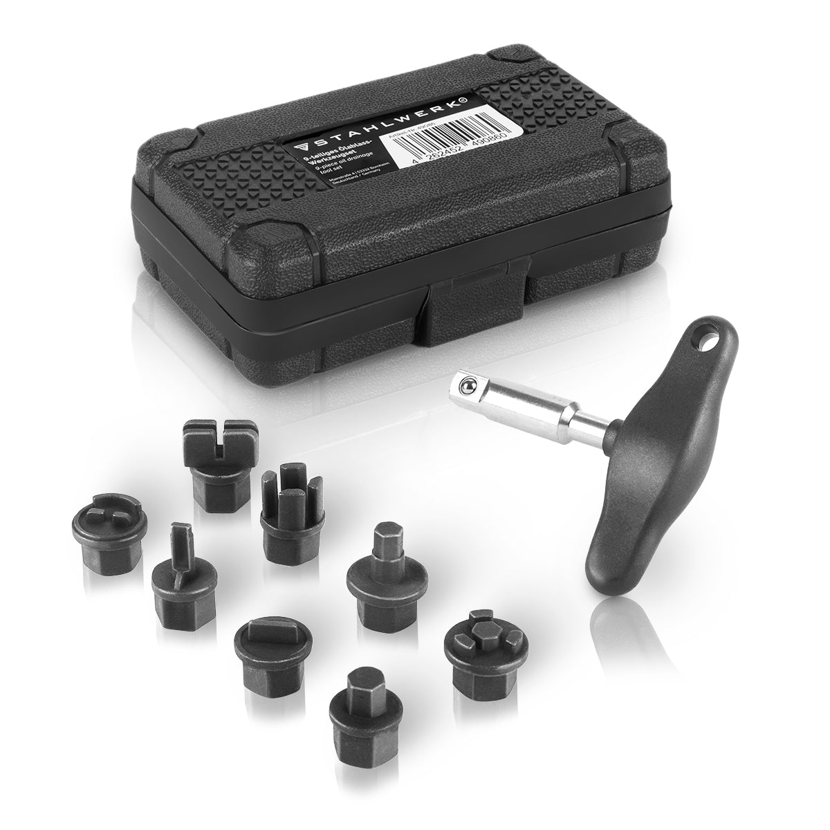 STAHLWERK Ölablass-Werkzeug Set 9 Teile | Ölwechsel-Werkzeug | Öldienst-Spezialprofil-Satz | Steckschlüssel-Satz für Kunststoff-Ölablassschrauben von BMW | DAF | Ford | GM | MAN | Mercedes | PSA | VAG