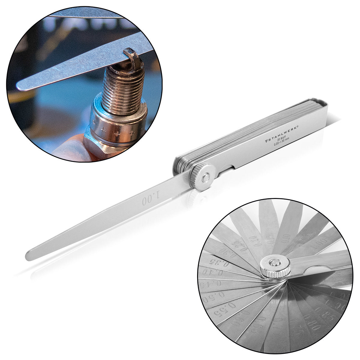 Capteur en acier enseignant 0,05-1 mm 20 feuilles de précision en acier inoxydable durci selon DIN 2275, enseignement de distance métrique / Théorie / lacunes de l'enseignement de la vanne