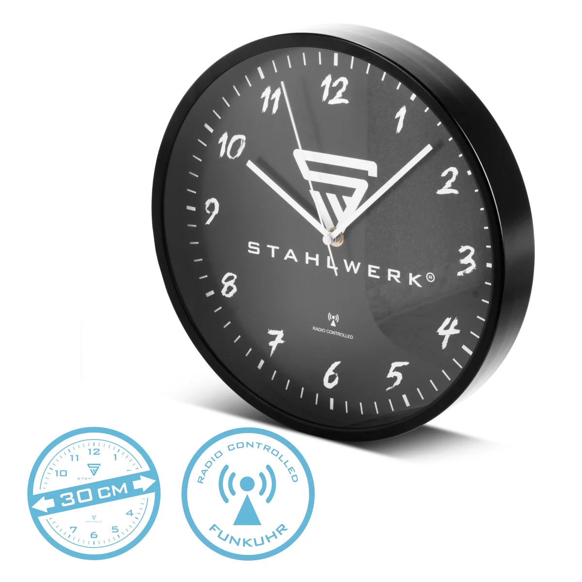 Horloge murale en acier de 30 cm montre de l'atelier noir | Horloge radio | Horloge murale radio | Horloge de bureau | Surveillance de cuisine avec boîtier en aluminium et horloge RCC