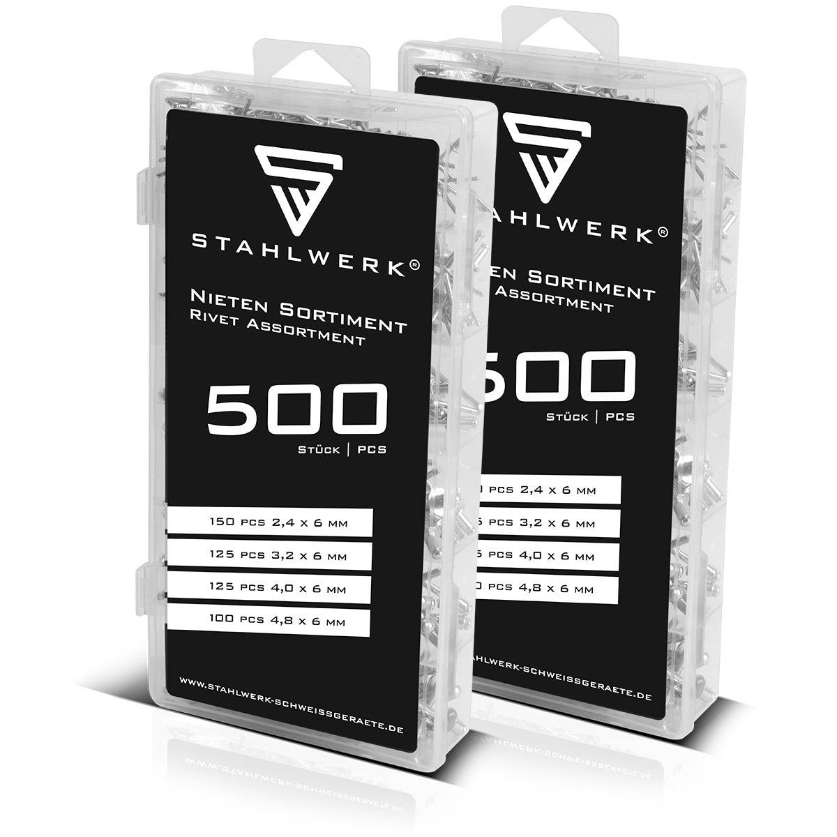 Les rivets aveugles de Rivet Steelworks en 1000 parties placés dans une boîte en plastique pratique | Rivets en aluminium en 4 tailles différentes | Rivets pop pour une utilisation avec les nietziers