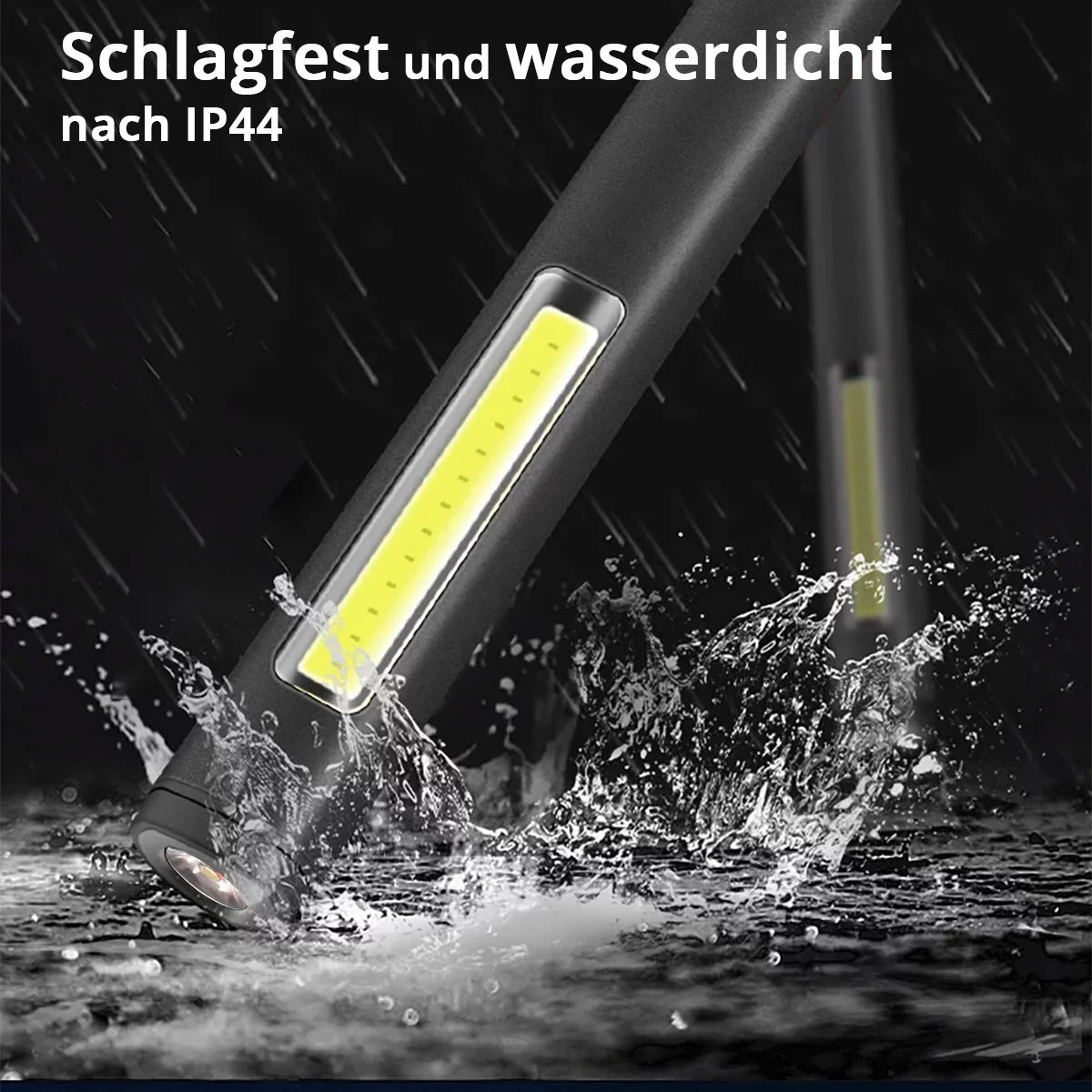 Luce di lavoro a LED in acciaio | Potente lampada stabile con torcia di pannocchia | Lampada di workshop con staffa magnetica | Connessione USB-C | Batteria da 600 mAh | Rapidamente ricaricabile | Lampada a LED universalmente utilizzabile