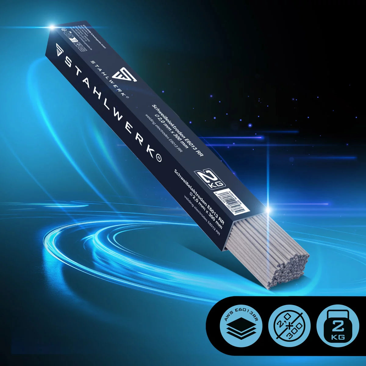 Elettrodi rivestiti STAHLWERK AWS E6013RR rivestimento rutile spesso 2 mm x 300 mm corrente di saldatura 50-70 A, elevata purezza chimica 2 kg MMA ARC