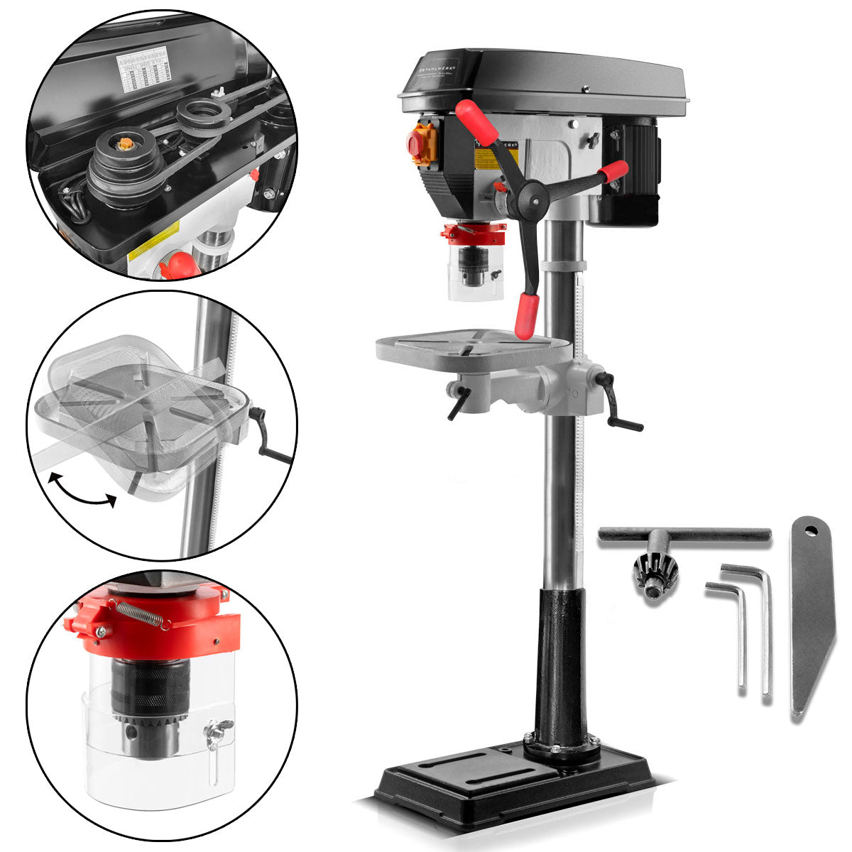 STAHLWERK BD-900 ST Säulenbohrmaschine mit 900 Watt 20 mm Bohrdurchmesser und höhenverstellbarem Bohrtisch für den Einsatz in Werkstatt und Industrie