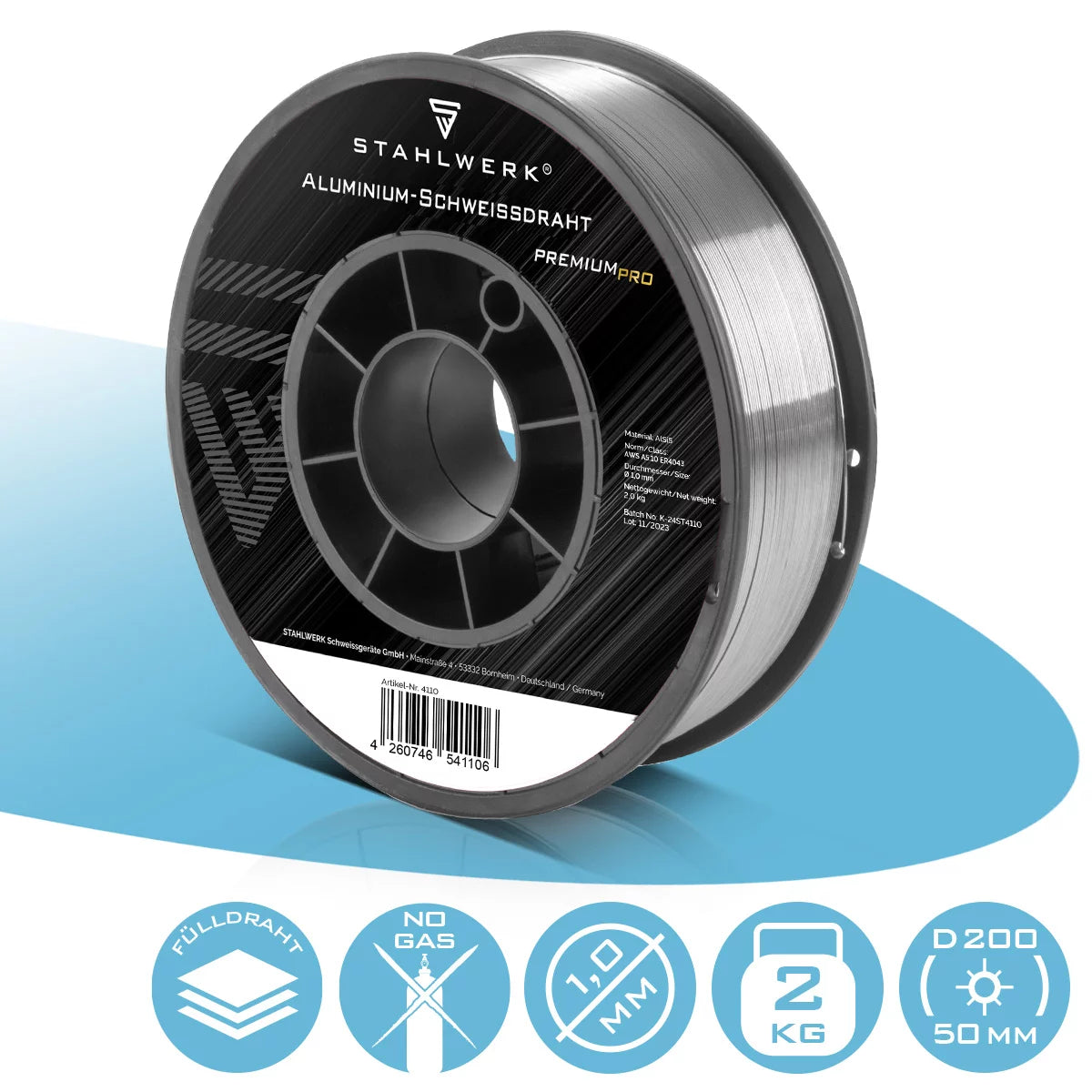 STAHLWERK MIG MAG Premium Schweißdraht / Drahtrolle ER70S-6 SG2 1,0 mm S270/D270 15 kg für Schweißarbeiten mit Schutzgas