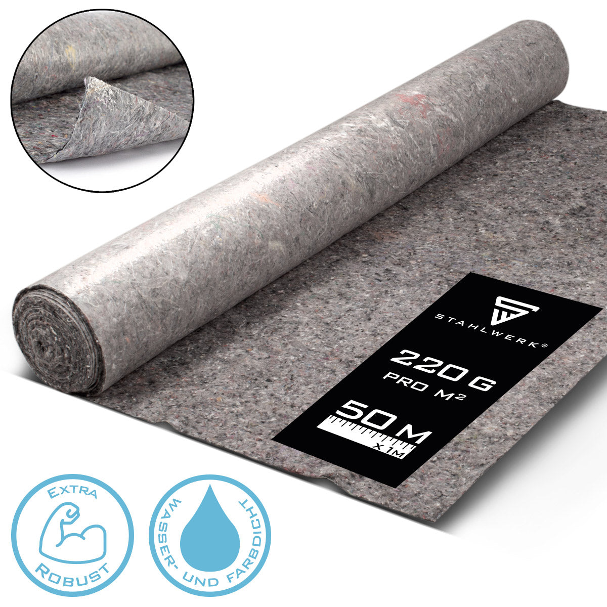STAHLWERK Abdeckvlies / Malervlies / Schutzvlies mit rutschhemmender Oberfläche, hochbelastbar, saugstark und wiederverwertbar, 50 m 220 g