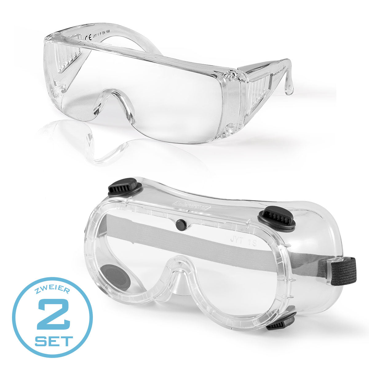 STAHLWERK Schutzbrillen Set / Korbbrille mit Halteband / Schweißerschutzbrille / Überbrille / Arbeitsschutzausrüstung