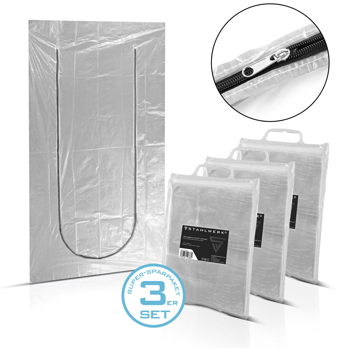 STAHLWERK Staubschutztür 3er Set U-Form Staubtür / Schmutzschleuse / Staubvorhang mit integriertem Reißverschluss