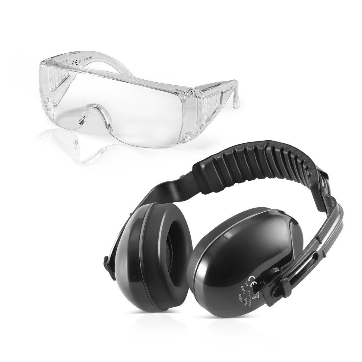 STAHLWERK Arbeitsschutz-Set AS-3 mit kratzfester Schutzbrille und Gehörschutz für sicheres Arbeiten in der Werkstatt