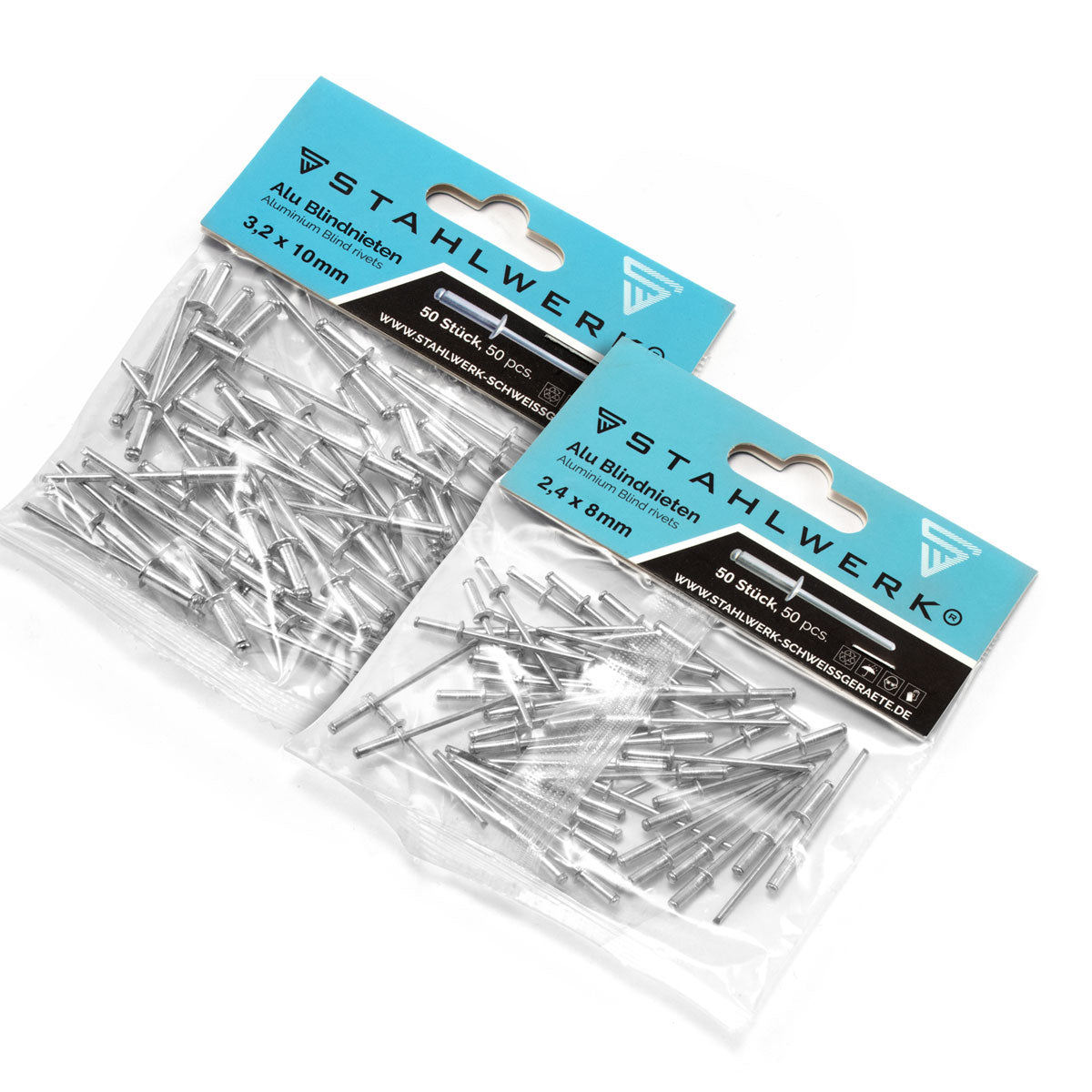 STAHLWERK 2er Set Alu-Blindnieten 2,4 x 8 mm + 3,2 x 10 mm - je 50 Stück