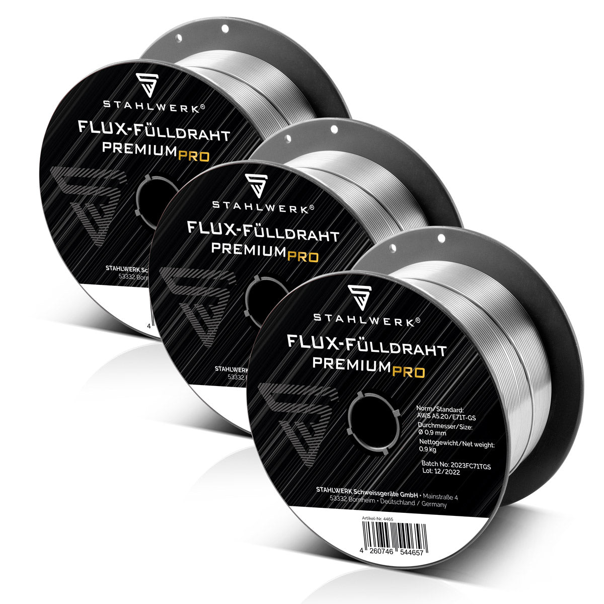 STAHLWERK MIG MAG Premium Schweißdraht - Fülldraht 3er Set E71T-GS Ø 0,9 mm S100/ D100 Drahtrolle mit 0,9 kg / Flux-Fülldraht
