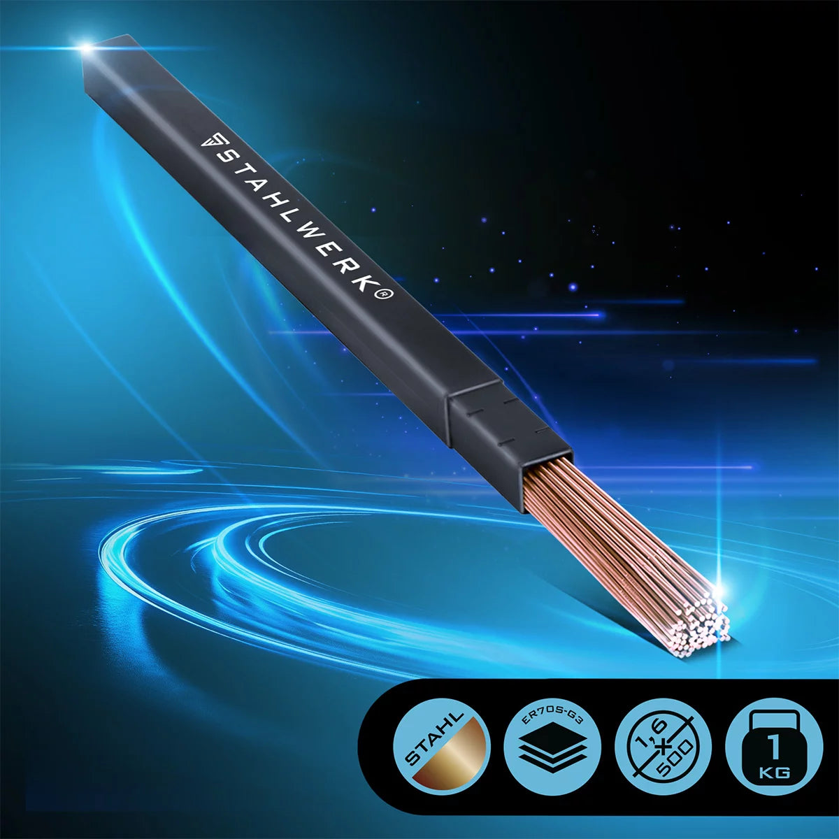 STAHLWERK WIG Schweißstäbe ER70S-G3 Stahl / Ø 1,6 x 500 mm / 1 kg / inklusive Aufbewahrungsbox