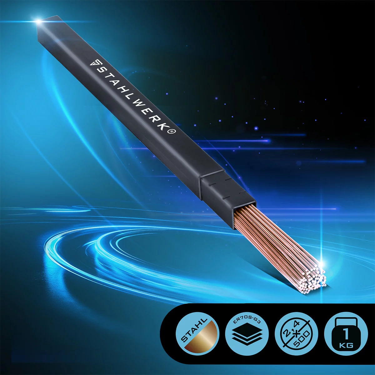 STAHLWERK WIG Schweißstäbe ER70S-G3 Stahl / Ø 2,4 x 500 mm / 1 kg inklusive Aufbewahrungsbox