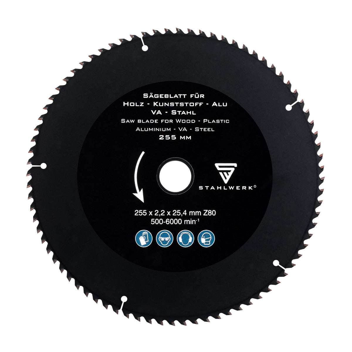 STAHLWERK Sägeblatt für Metalltrennsäge/Metallkreissäge Schwarz 255 x 25,4 mm / 10"