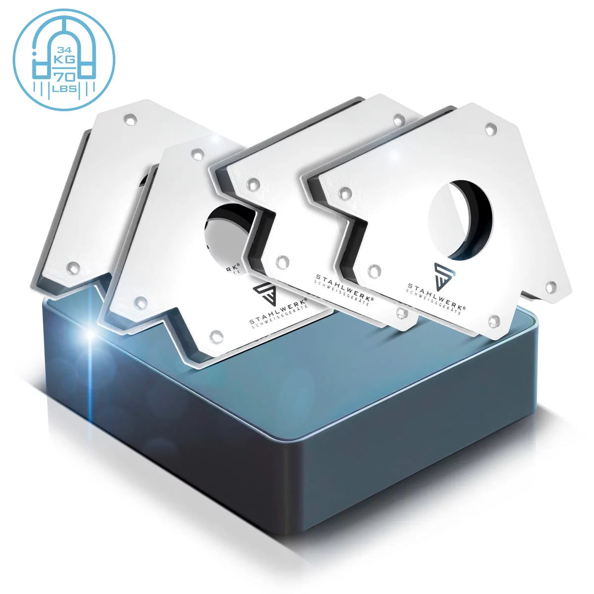 STAHLWERK 4 × Magnet-Schweißwinkel Magnetwinkel Schweißmagnet 45° x 90° x 135°, 34 kg / 75 lbs