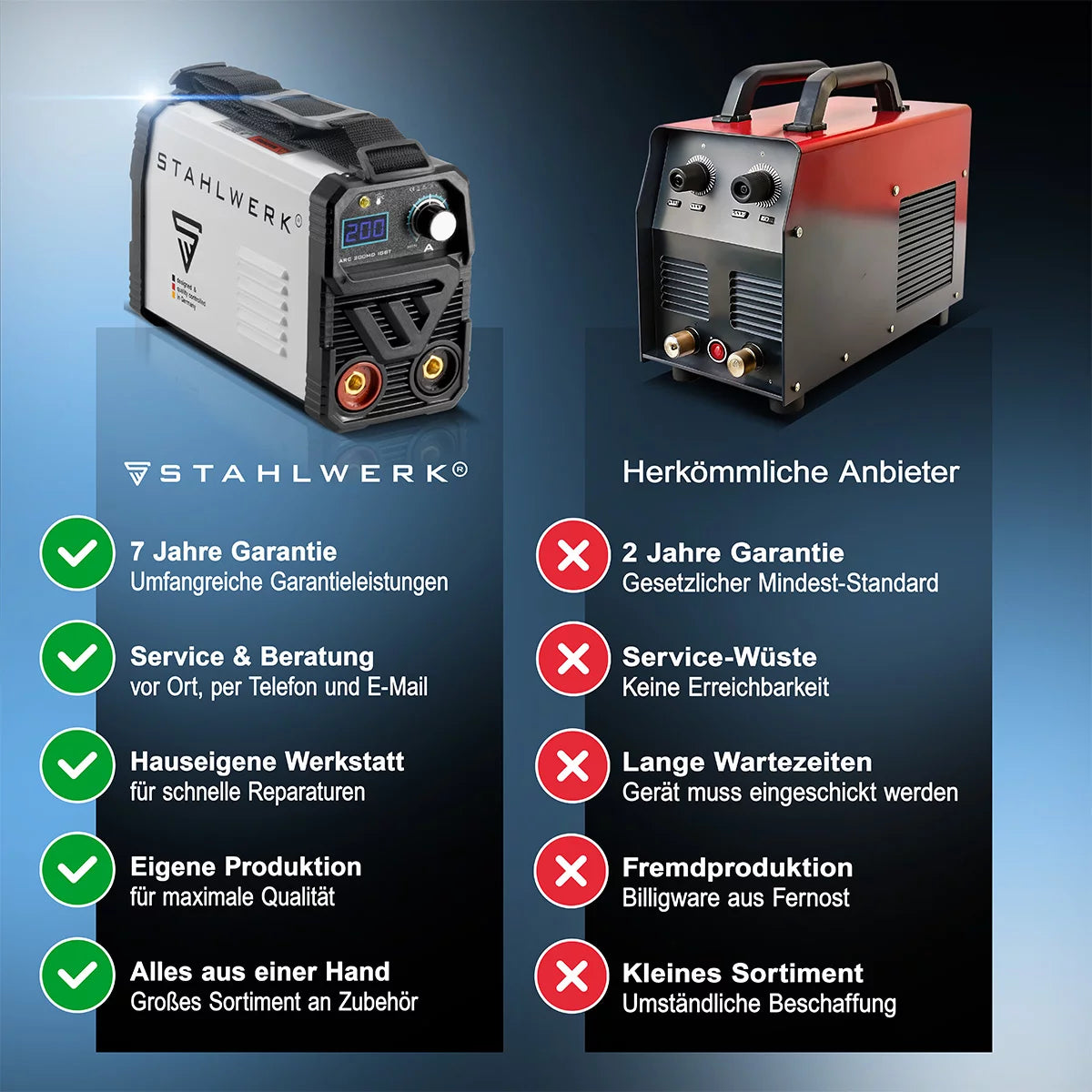 STAHLWERK ARC 200 MD Schweißgerät Vollausstattung - DC MMA | E-Hand| Lift-TIG Inverter mit 200 Ampere, IGBT Technologie und Single-Board, 7 Jahre Hersteller-Garantie