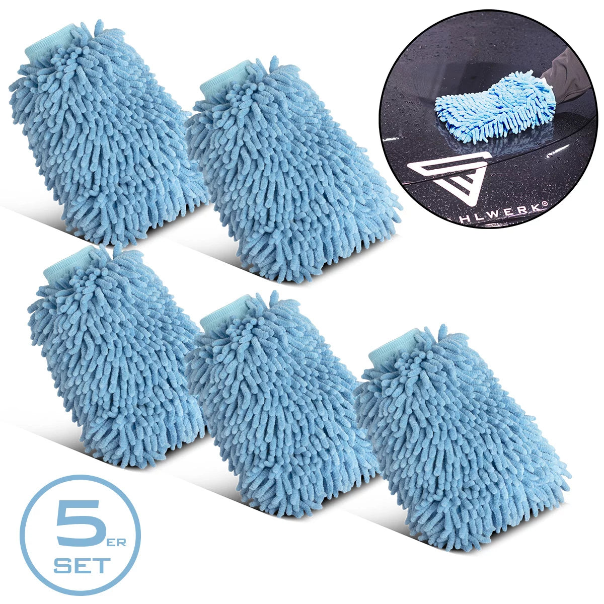STAHLWERK Autowaschhandschuh im 5er Set 20 x 28 cm Chenille-Reinigungshandschuh | Mikrofaser-Schwamm | Mikrofaser-Tuch | Autoschwamm | Mikrofaser-Handschuh | Putzhandschuh