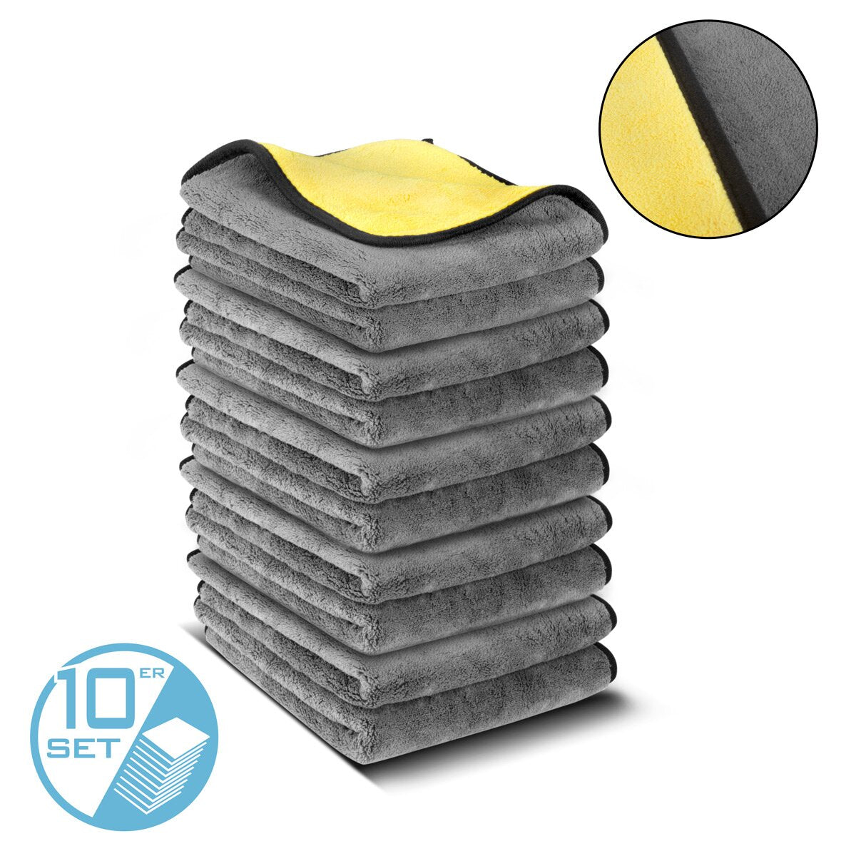 STAHLWERK Doppelseitiges Korallenvlies 10er Set 40 x 40 cm 600 gsm Mikrofaser-Handtuch | Trockentuch | Reinigungstuch | Poliertuch | Putztuch | Pflegetuch | Mikrofaser-Tuch