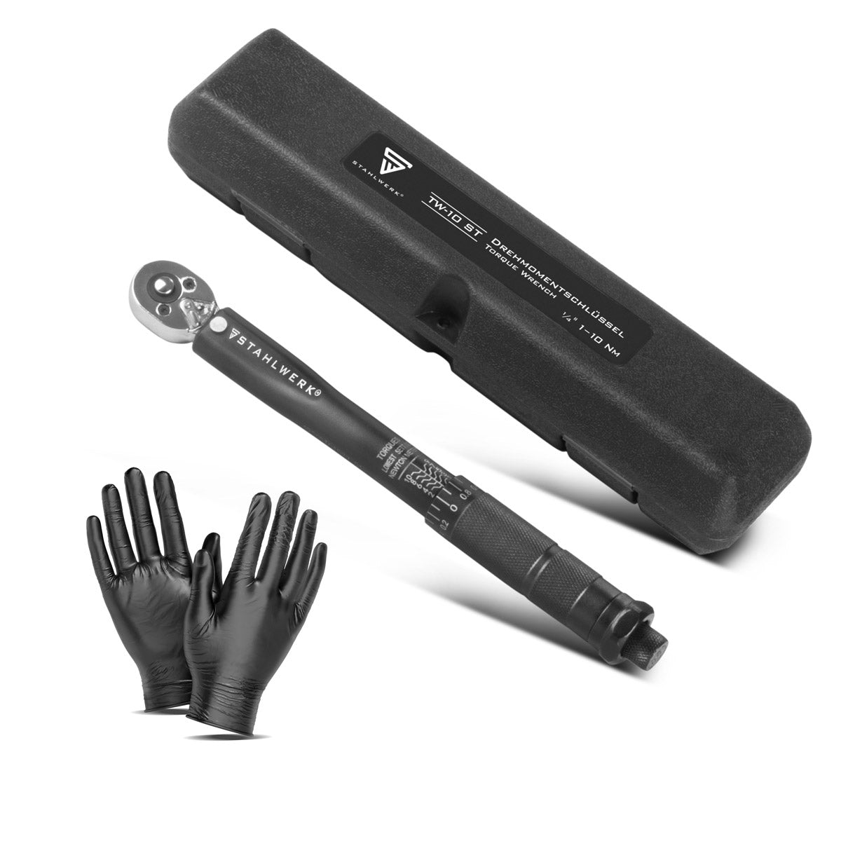 STAHLWERK Drehmomentschlüssel TW-10 ST 1-10 Nm 1/4“ Zoll Umschaltknarre | Ratschenschlüssel | Ratsche | Knarre mit Mikrometerskala