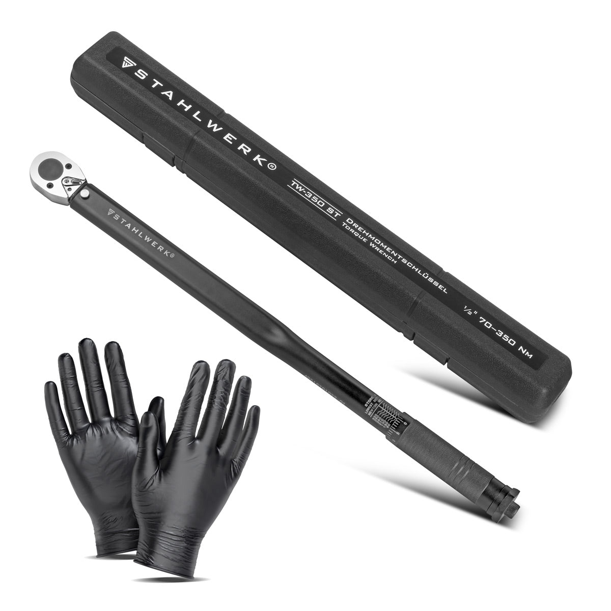 STAHLWERK Drehmomentschlüssel TW-350 ST 70-350 Nm 1/2“ Zoll Umschaltknarre | Ratschenschlüssel | Ratsche | Knarre mit Mikrometerskala