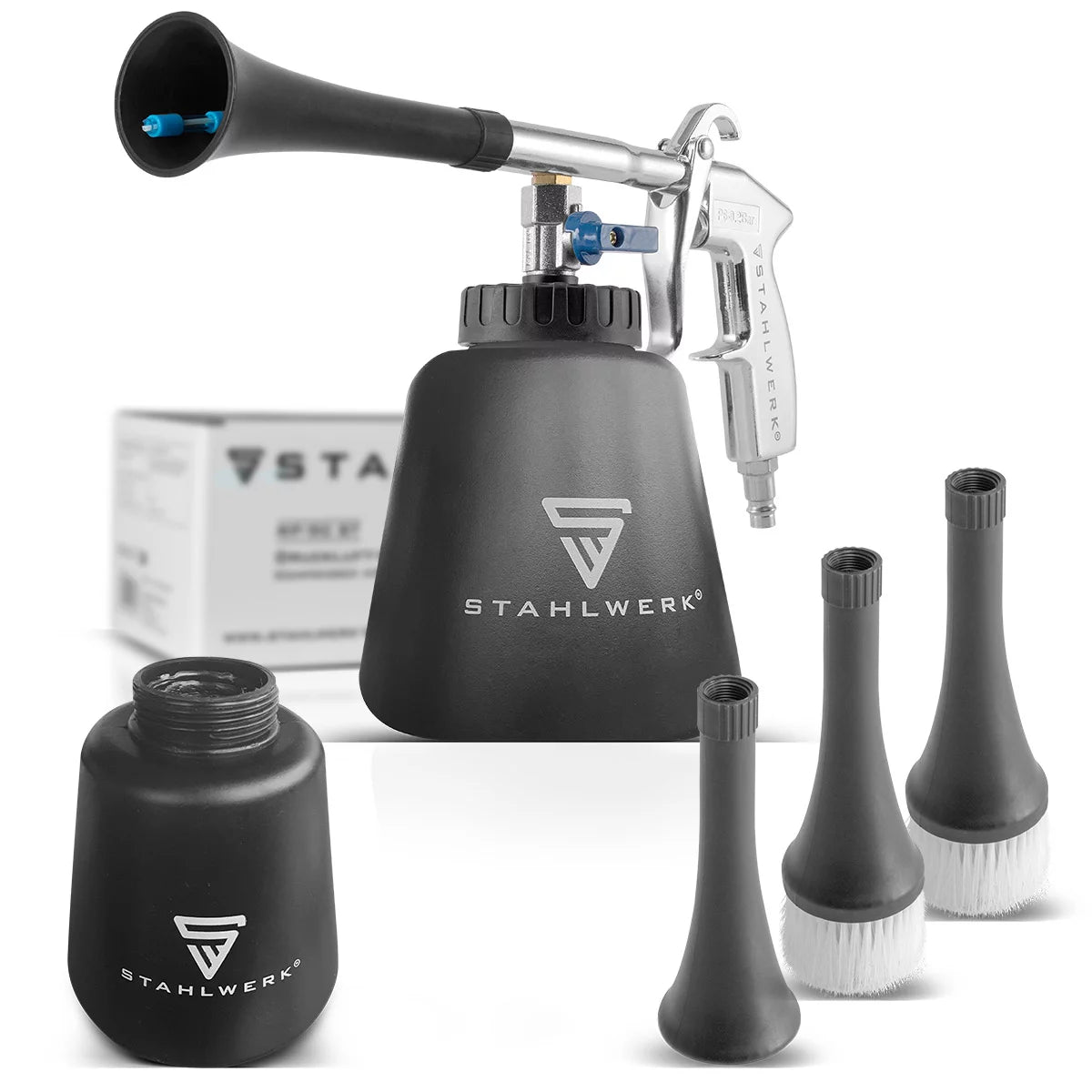 STAHLWERK Druckluft-Reinigungspistole RP-90 ST mit Zubehör-Set | Druckluft-Reiniger mit Tornado-Effekt | Innenreiniger | Waschpistole | Kfz Ausblaspistole zum Reinigen verschmutzter Oberflächen