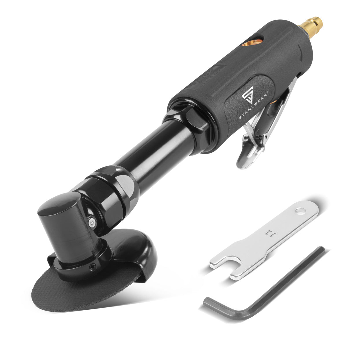STAHLWERK Druckluft-Trennschneider DTS-310 ST mit 18.000 U/min und ¼" Aufnahme für 3" / 76,2 mm Trennscheiben, extra langer Winkelschleifer | Pneumatik-Trennschleifer | Druckluft-Schleifer