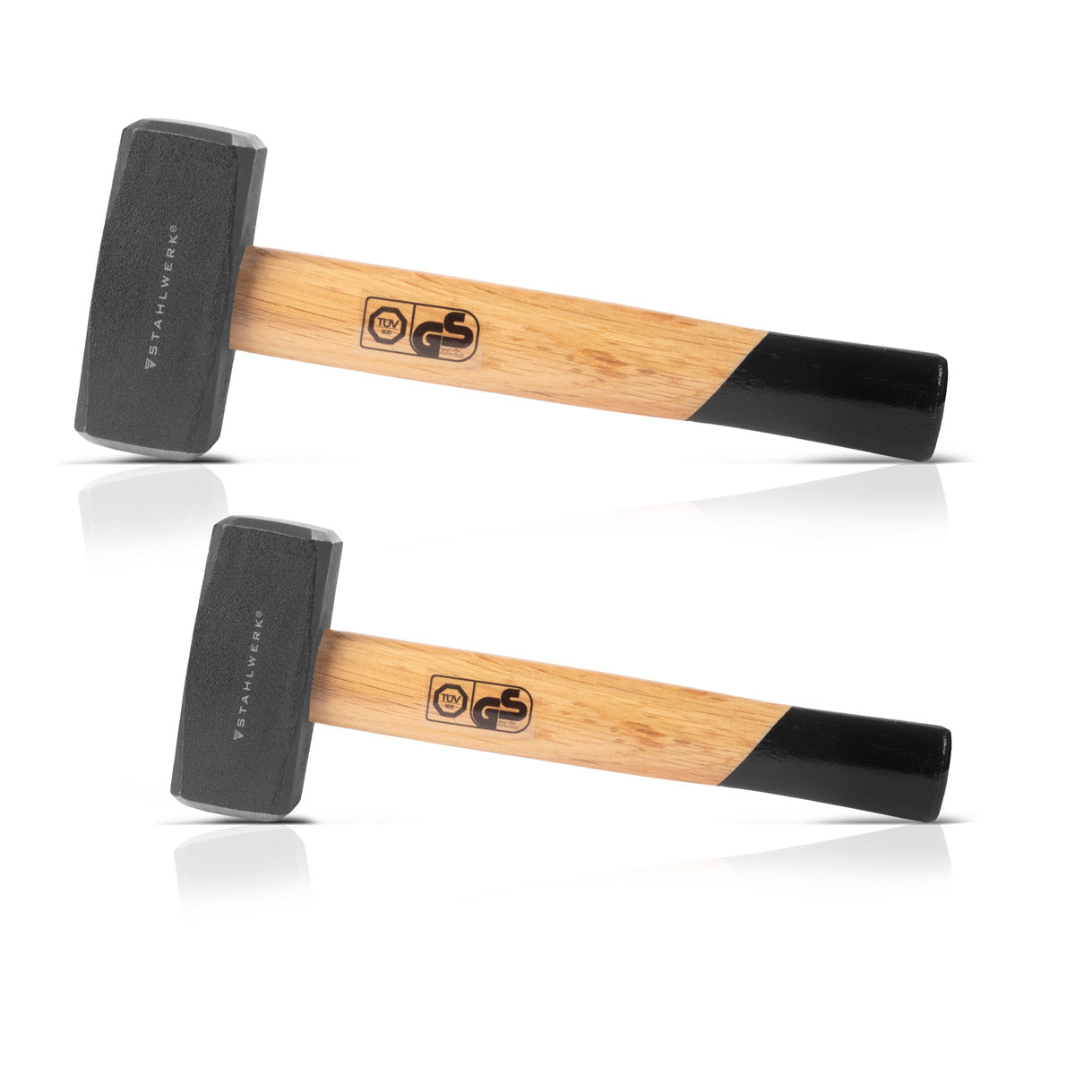 STAHLWERK Fäustel 2er Set mit 1000 g und 1500 g Hammerkopf | Plattenhammer aus gehärtetem und lackiertem Carbon-Stahl | hochwertiger Hammer mit bruchfestem Hartholzstiel | TÜV + GS geprüft