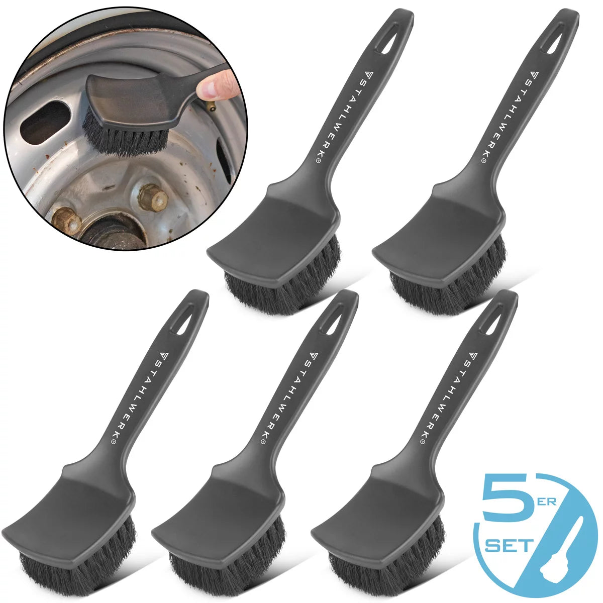 STAHLWERK Felgenbürste 5er Set Autoreinigungsbürste | Detailing-Bürste | Radbürste | Felgenreiniger | Pflegebürste | Autowaschbürste | Universal-Bürste