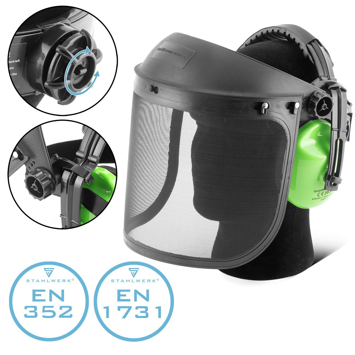 STAHLWERK Gesichts- und Gehörschutz-Kombination EN352 EN1731 Schutzvisier | Forsthelm | Schutzhelm | Augenschutz | Schutzmaske | Kopfschutz | PSA für Agrar-, Forst- und Baugewerbe