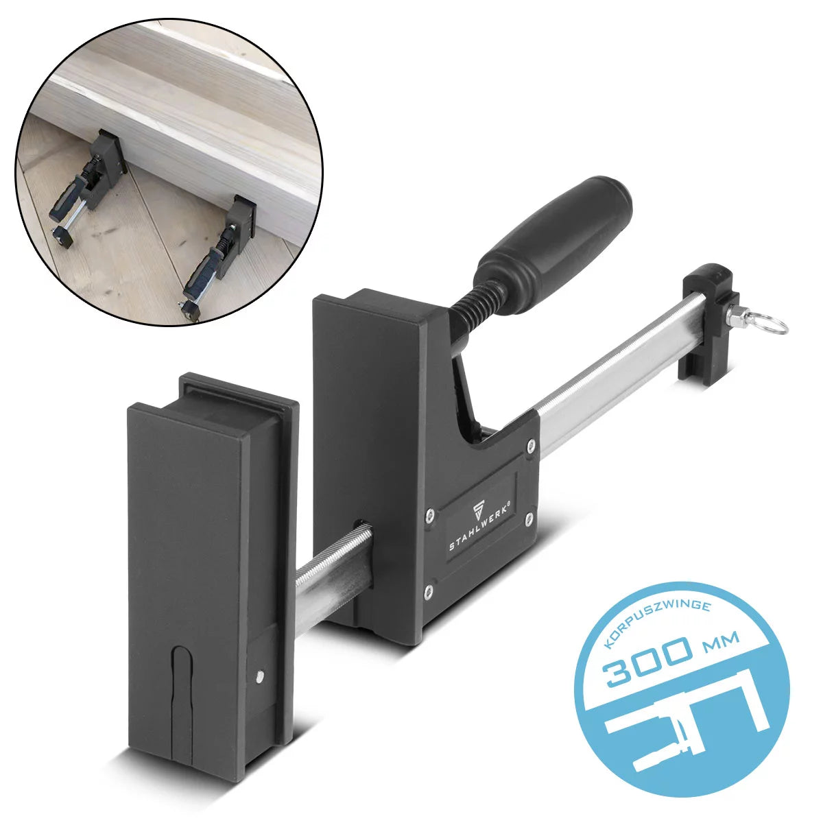 STAHLWERK Korpuszwinge 95x300 mm / 12"| kraftvolle Schraubzwinge mit 650 kg Spannkraft | Klemmzwinge mit großer Auflagefläche zum Fixieren von Werkstücken | stabile Zwinge mit Spannweite 300 mm, Spanntiefe 95 mm