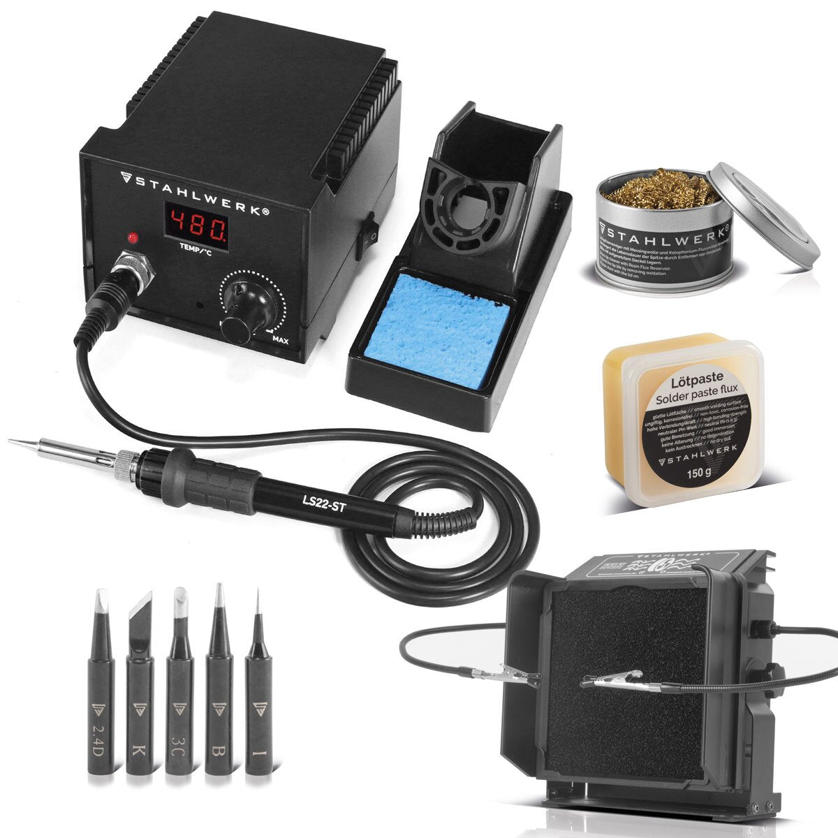 STAHLWERK Lötstation LS22-ST mit 22 Watt im Komplett-Set | Kombi-Lötstation | Lötgerät | Lötkolben mit Lötabsaugung, Lötkolbenspitzen, Lötkolbenreiniger und Lötpaste