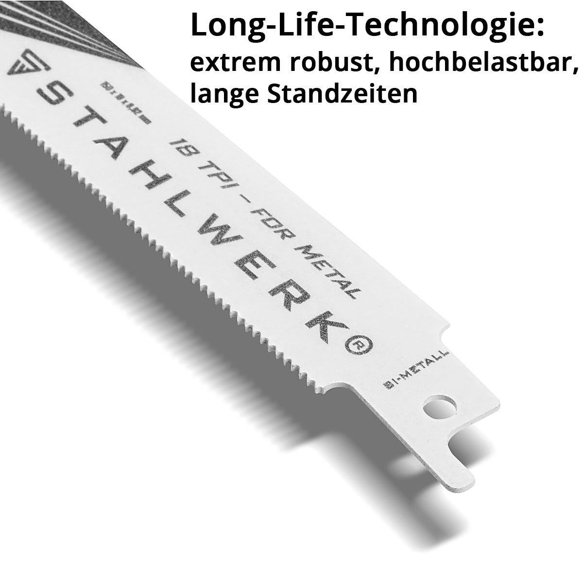 STAHLWERK Metall-Sägeblatt 2er Set 150 x 19 x 0,92 mm Long Life Säbelsägeblätter | Reciprosägeblätter mit 1/2 Zoll Aufnahme und 18 TPI für Säbelsägen | Reciprosägen | Stichsägen
