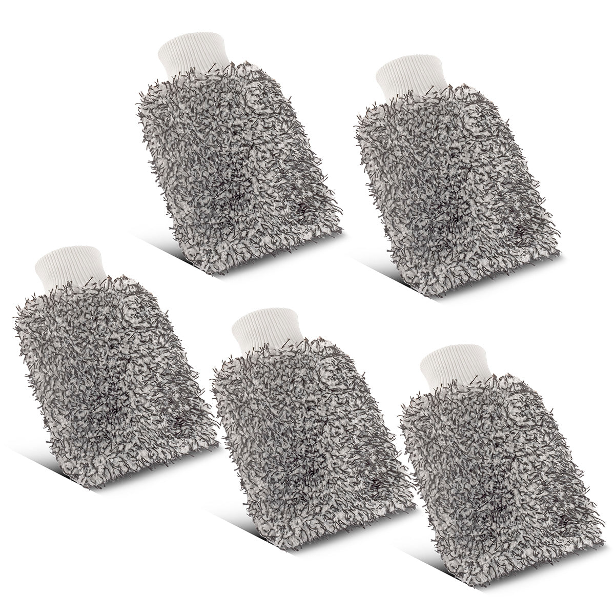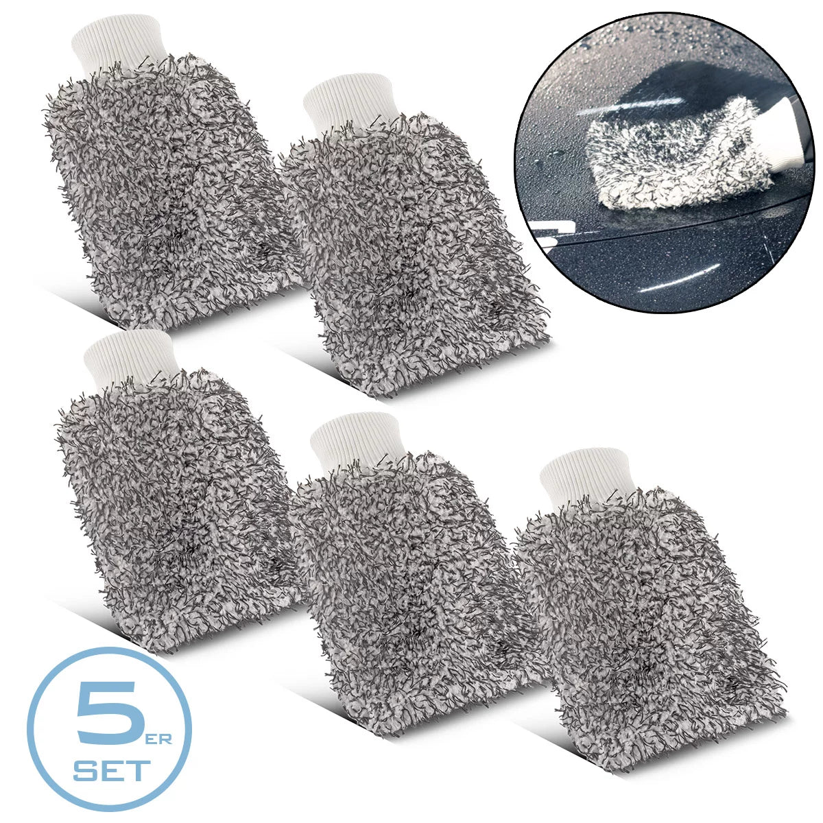 STAHLWERK Mikrofaser-Waschhandschuh im 5er Set 20 x 28 cm Reinigungshandschuh | Mikrofaser-Schwamm | Mikrofaser-Tuch | Autoschwamm | Mikrofaser-Handschuh | Putzhandschuh | Auto-Waschhandschuh