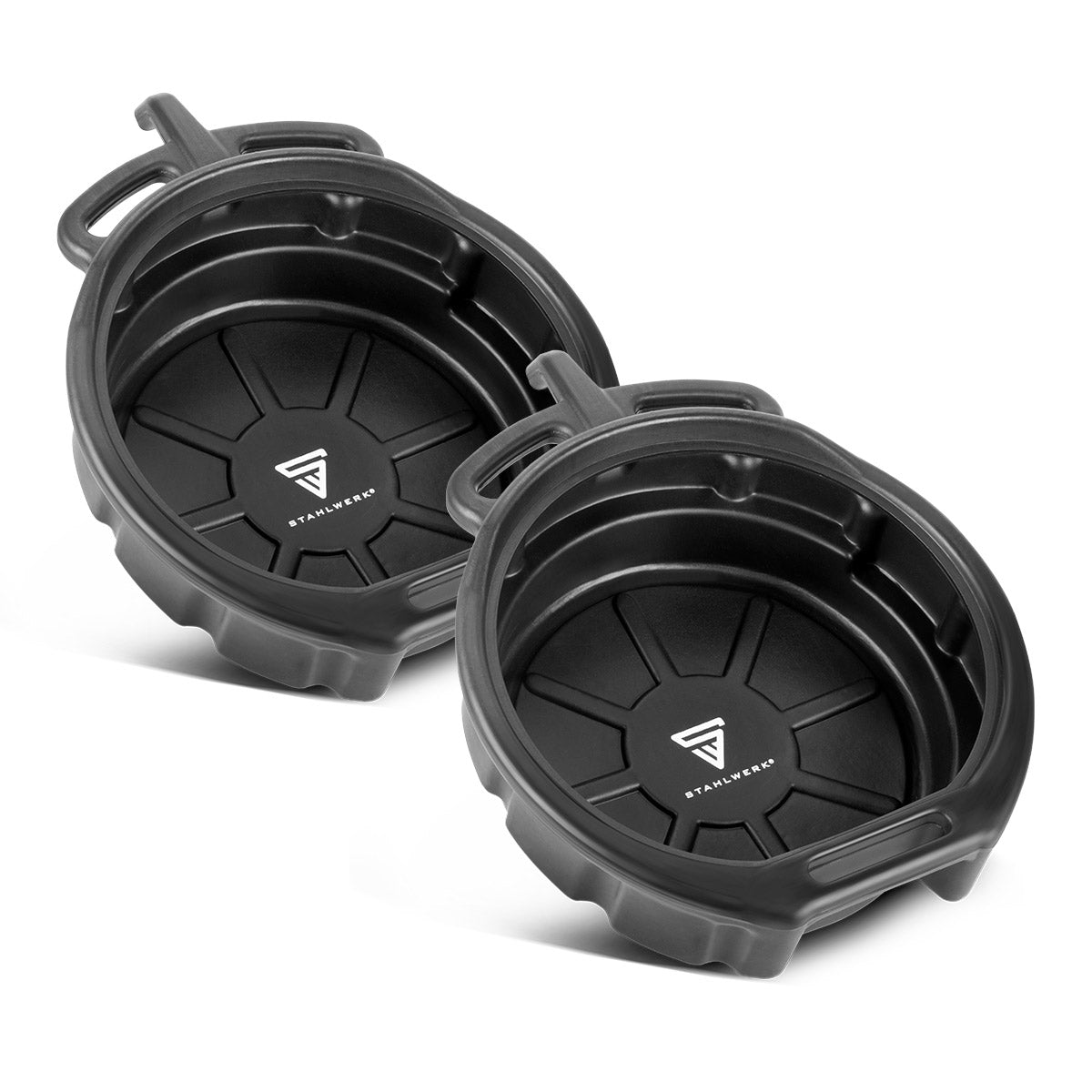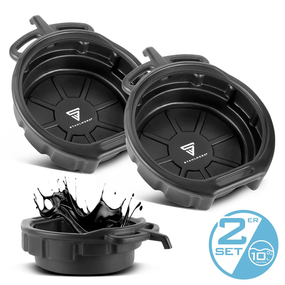 STAHLWERK Ölauffangwanne 2er Set mit Abfüllstutzen 10 l flache, runde Auffangwanne | Ölwanne | Ölwechselkanister | Kunststoffwanne | Ölauffangbehälter aus Kunststoff für Kfz-Ölwechsel