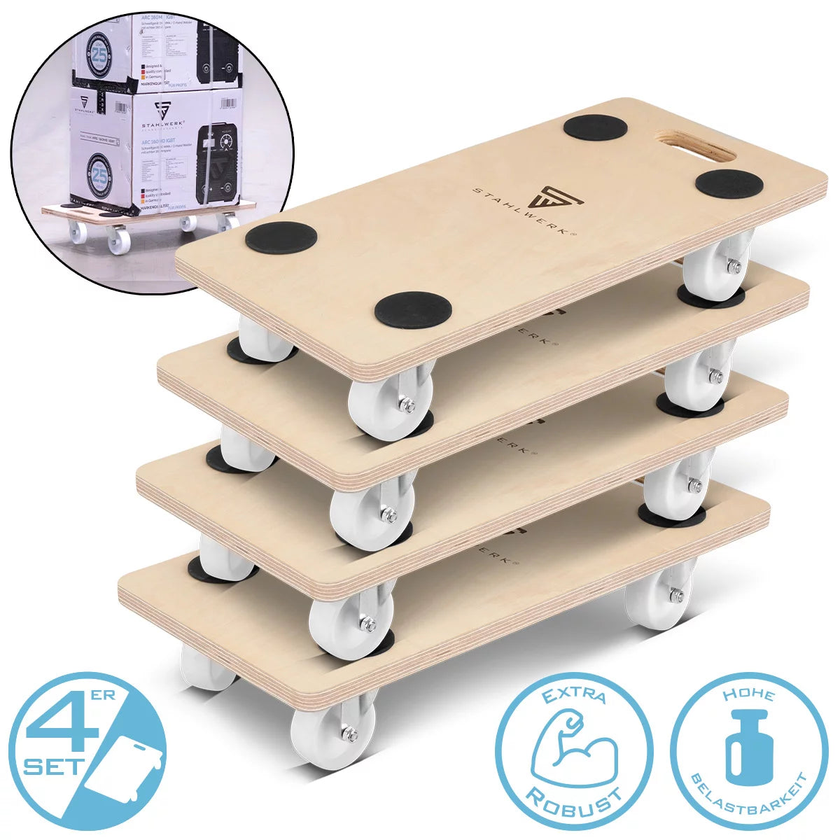 STAHLWERK Rollwagen TR-250 ST 4er Set mit 250 kg Tragkraft und abriebfesten Lenkrollen 58 x 29 cm Plattformwagen | Transportwagen | Möbelroller | Rollbrett | Handwagen | Transportroller