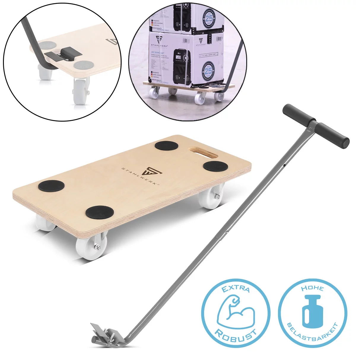 STAHLWERK Rollwagen TR-250 ST mit Handgriff 250 kg Tragkraft und abriebfesten Lenkrollen 58 x 29 cm Plattformwagen | Transportwagen | Möbelroller | Rollbrett | Handwagen | Transportroller
