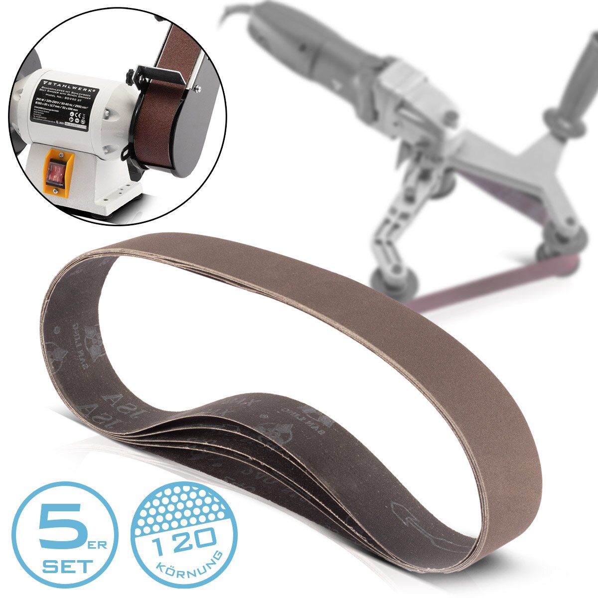 STAHLWERK Schleifband 5er Set mit P120 Körnung 40 x 760 mm Universal-Schleifpapier | Gewebe-Schleifband | Schleifmittel für Rohrbandschleifer, Bandschleifer und Schleifgeräte