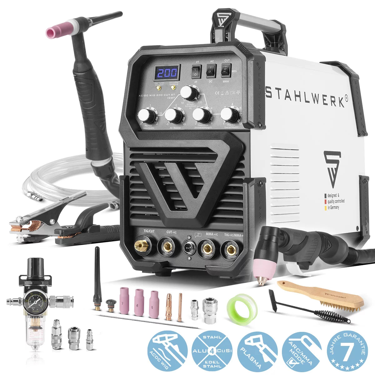 STAHLWERK Schweißgerät AC/DC WIG 200 Plasma ST IGBT / Kombischweißgerät / 200 Amp WIG + MMA Schweißgerät mit 50 Amp CUT Plasmaschneider, Alu geeignet