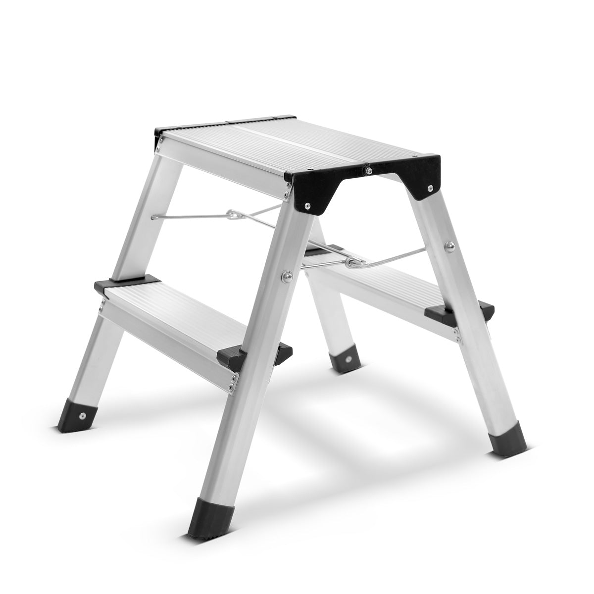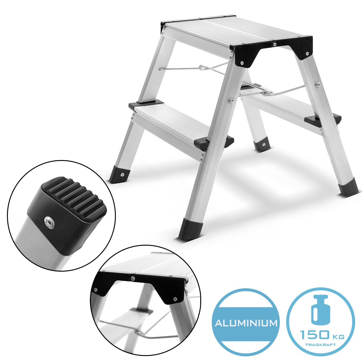 STAHLWERK Trittleiter TL-22 ST mit 150 kg Tragkraft und 2 Stufen Aluminium-Leiter | Klappleiter | Klapptritt | Mehrzweckleiter | Haushaltsleiter | Stehleiter mit rutschfesten Sprossen