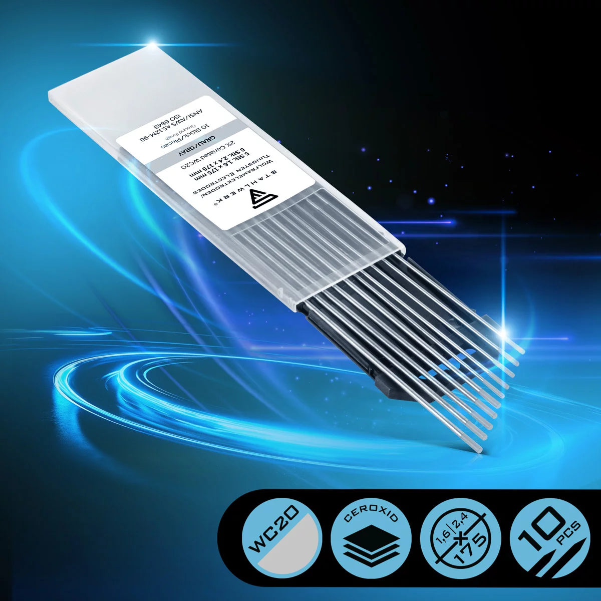 STAHLWERK Wolframelektroden / Schweißelektroden WC20 grau im Set - 5 x 1,6 mm + 5 x 2,4 mm