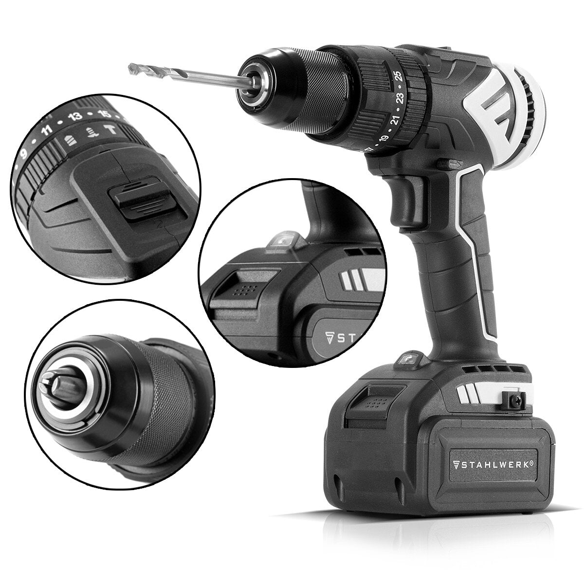 Stahlwerk kablosuz yumruk sondaj tornavida tornavida ASB-20 ST 20 volt sistem ve fırçasız teknoloji kablosuz tornavida | Cabbary | Pil, şarj cihazı, makine kasası, bit ve matkap seti dahil olmak üzere matkap tornavida