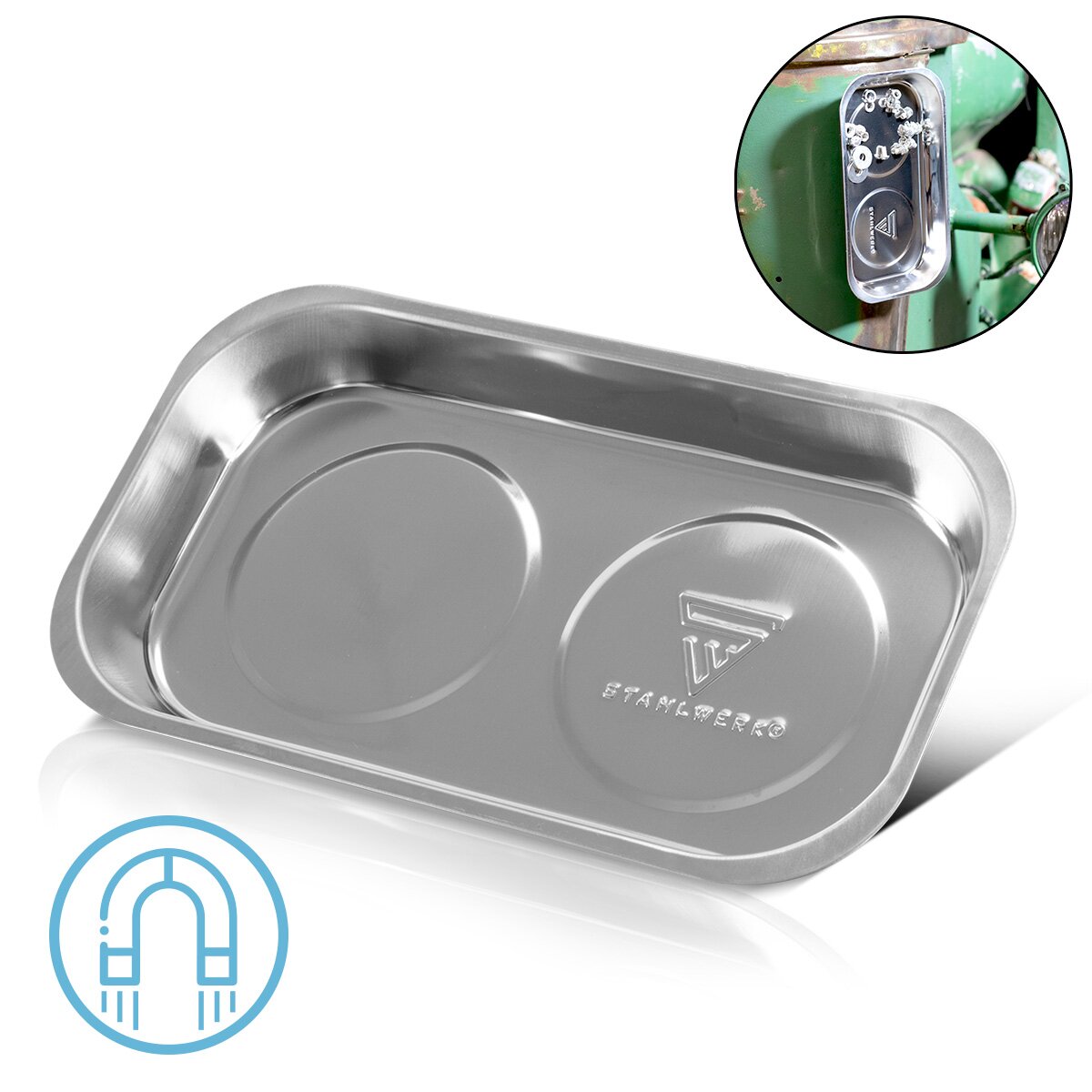 Stahlwerk Magnetschale MS-28 ST 237 x 136 x 28 mm Magnnet Plakası | Vida Kasesi | Habbit kabuğu | Magnneta Blind | Vidalar, tırnaklar ve aletler için güçlü yapışkan güce sahip paslanmaz çelikten yapılmış manyetik kase