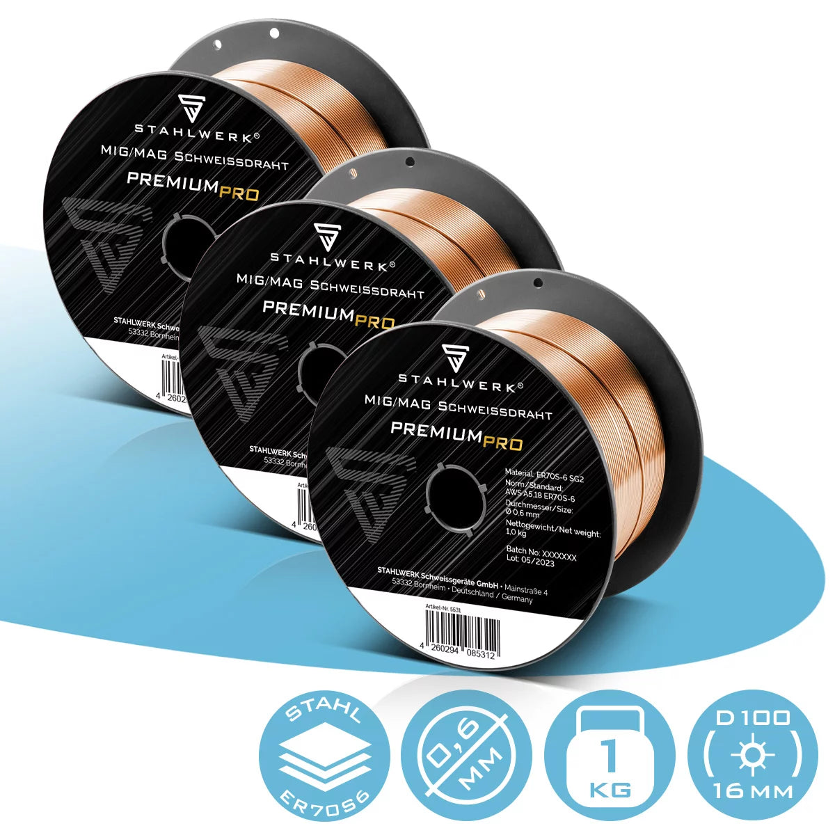 Stahlwerk Mig MAG Kaynak Teli ER70S-6 SG2 Ø 0.6 MM S100/D100 Tel Rulo 1 Kg 3 Sette