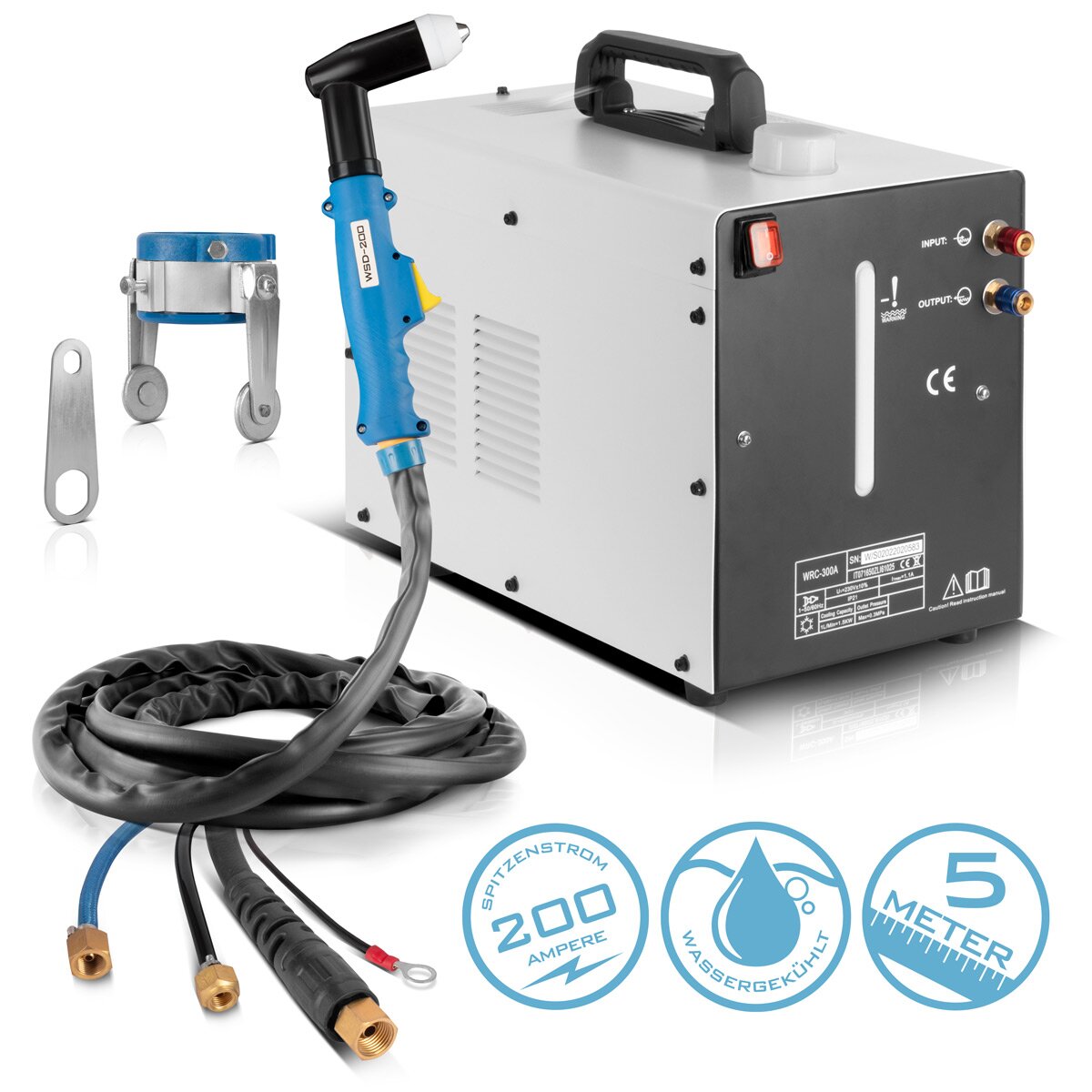 Stahlwerk WSD-200 su soğutmalı plazma kesme brülörleri 200'e kadar kesme kesme brülörü | 370 W ve 6 L tanklı su soğutucu dahil 5 m hortum paketi ve ayrı bir ara parçalı plazma grenner