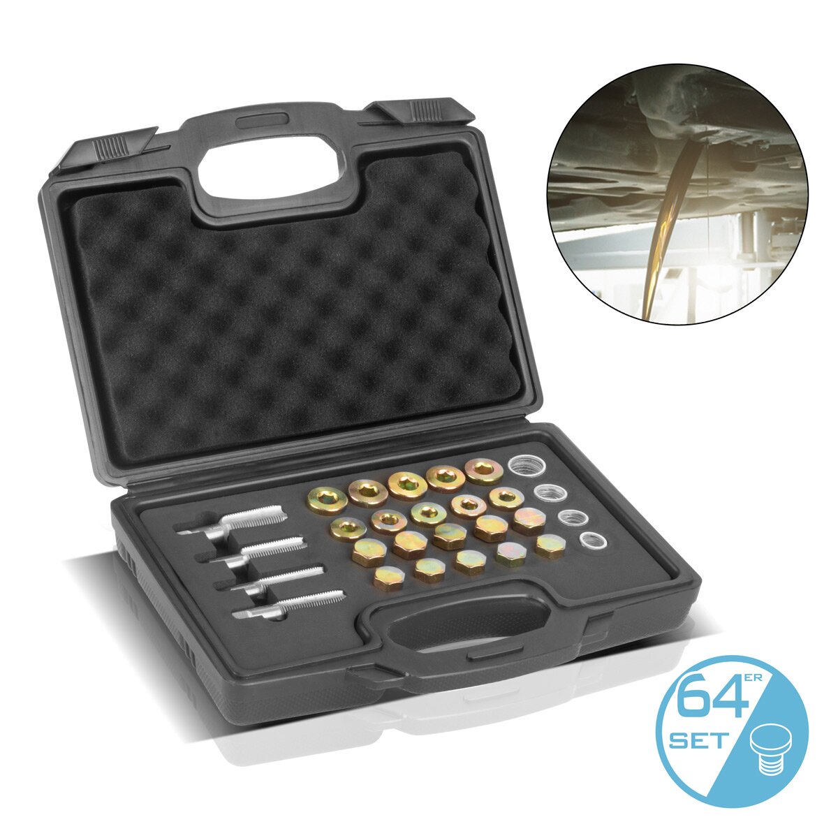Stahlwerk Yağ Drenaj Vidalı Onarım Seti 64 Parça Yağ Dinleme İpliği için Set | Konu Tespiti | Dokunma Matkap | Petrol Değişimi Aracı | Farklı Onarım Seti | Yağ Küvetleri Onarım Seti